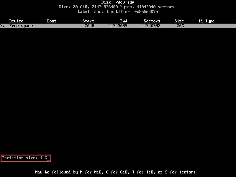 5.選擇分區(qū)大小,以千兆字節(jié)顯示。輸入******尺寸后,按Enter確認(rèn)。