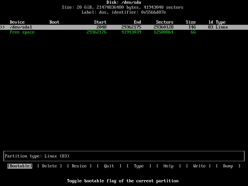 7.選擇屏幕底部的Bootable選項(xiàng),然后按Enter確認(rèn)。這樣你就可以確保 Arch Linux 從你安裝的主分區(qū)啟動(dòng)。