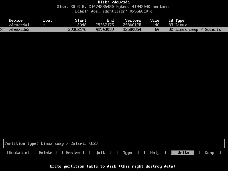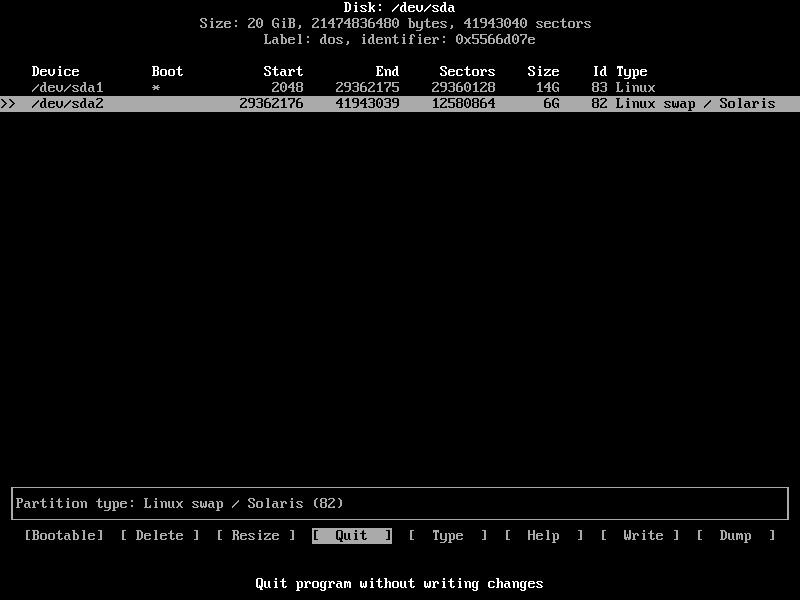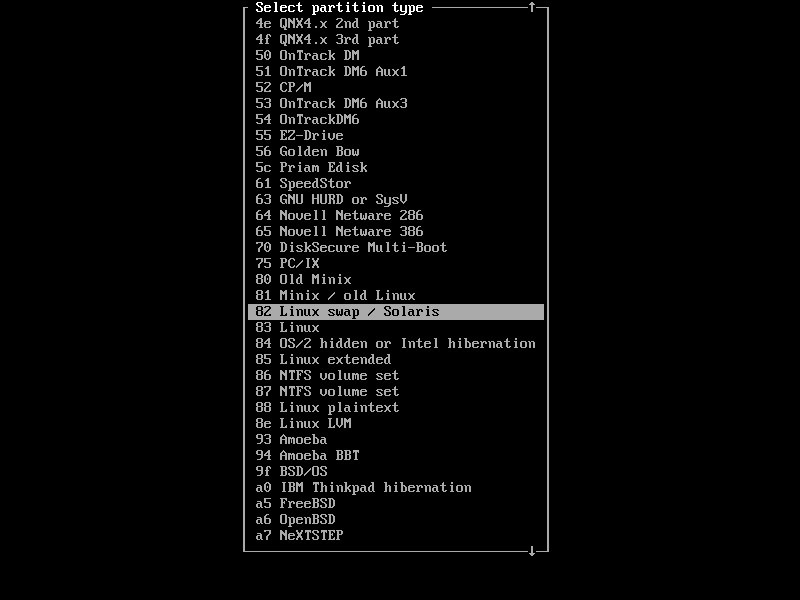 9.在列表中向下滾動(dòng),直到找到82Linux swap / Solaris。按Enter確認(rèn)。這將創(chuàng)建一個(gè)交換空間分區(qū)。