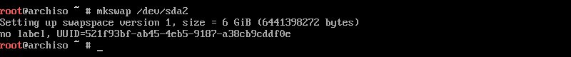 2.接下來,使用以下命令為交換空間分區(qū)創(chuàng)建文件系統(tǒng)mkswap