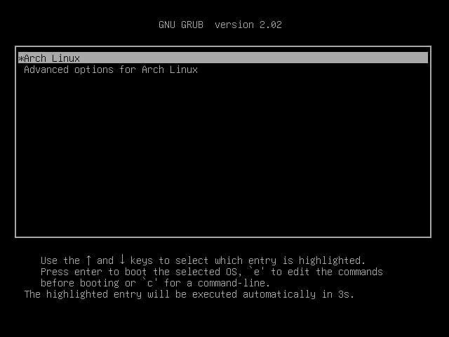 系統(tǒng)重新啟動(dòng)后,GRUB 會(huì)加載并為您提供加載 Arch Linux 的選項(xiàng)。按Enter加載系統(tǒng)。使用您設(shè)置的密碼登錄。